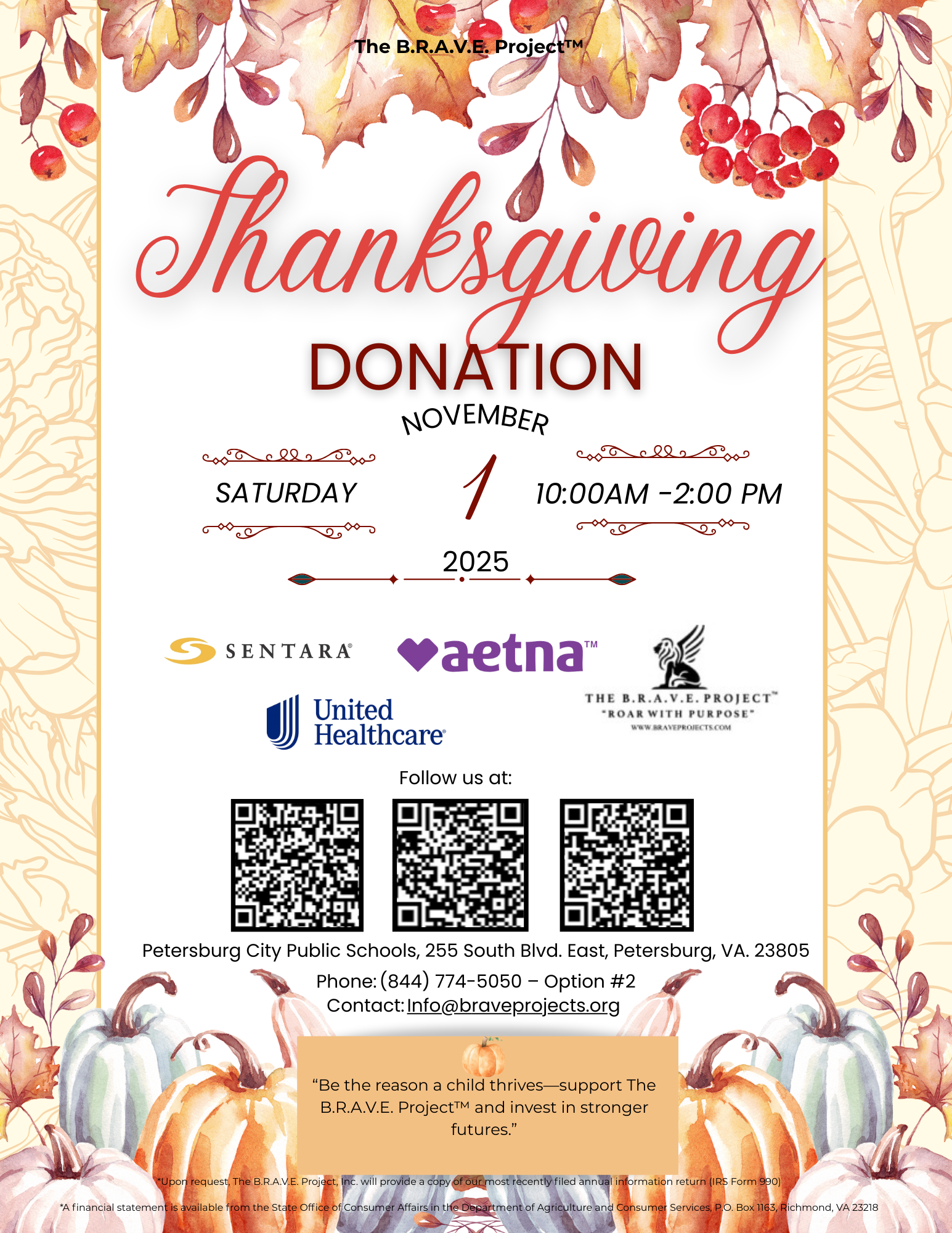 BRAVE Community Event: Thanksgiving Drive or Donation